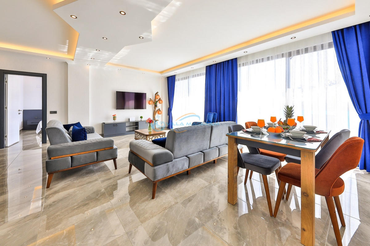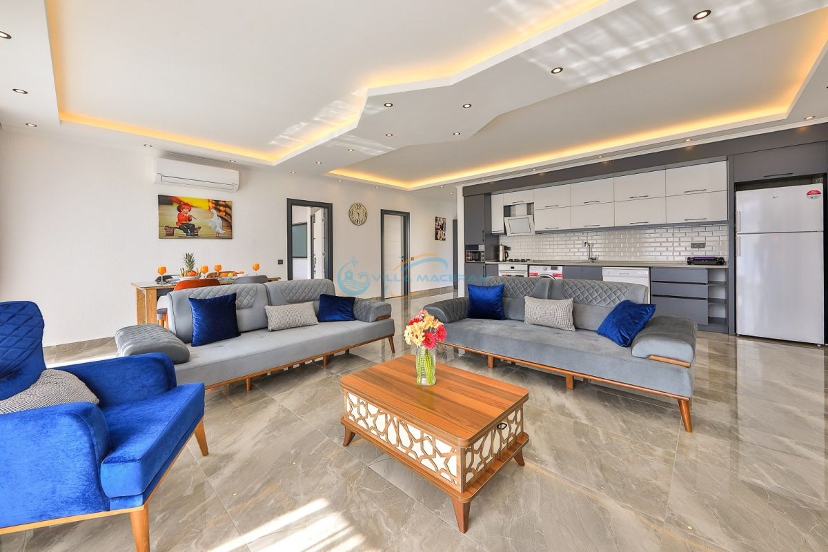 Salon içerisinde oturma grubu, televizyon, klima, sehpa, internet bulunmaktadır.