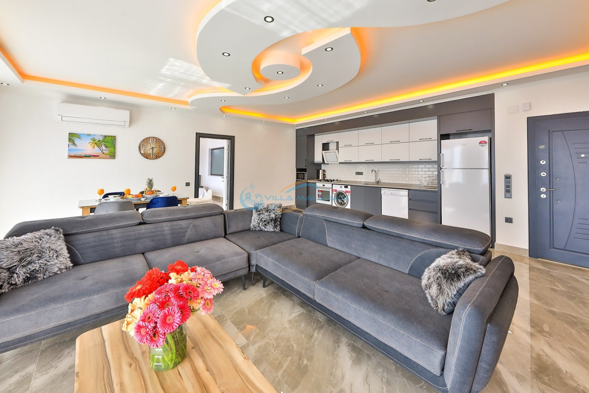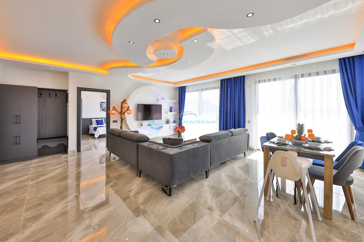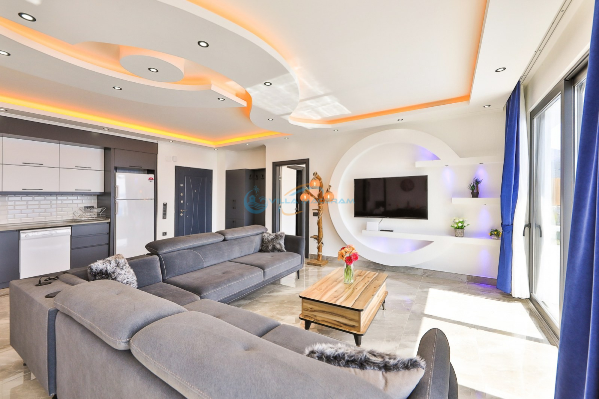 Salon içerisinde oturma grubu, televizyon, klima, sehpa, internet bulunmaktadır.