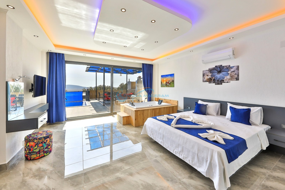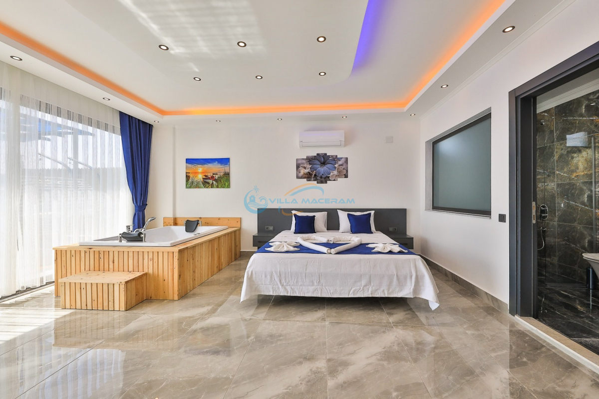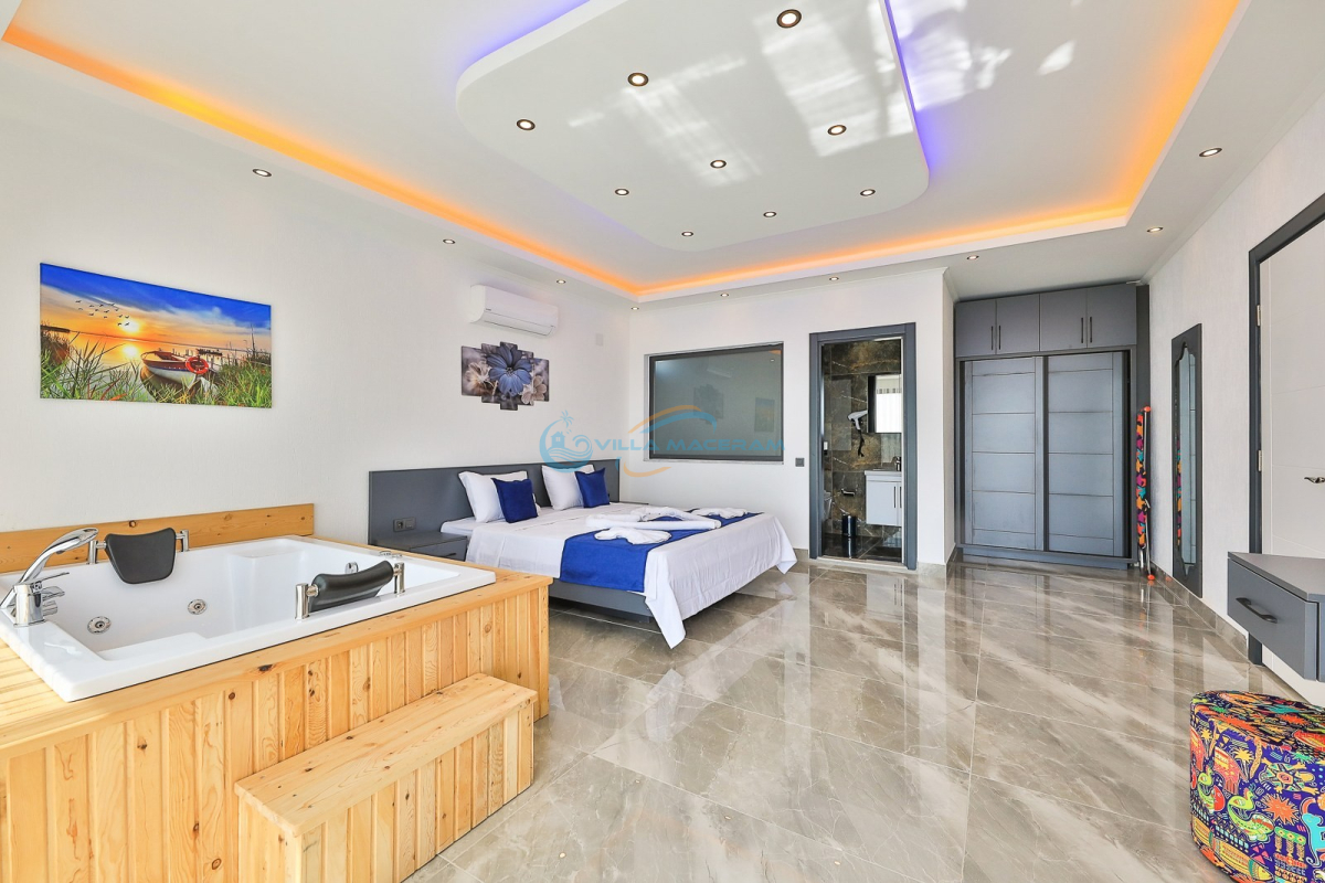 Yatak Odası: 1 adet çift kişilik yatak, klima, komodin, elbise dolabı,tv, makyaj masası, jakuzi, banyo ve tuvalet bulunmaktadır.